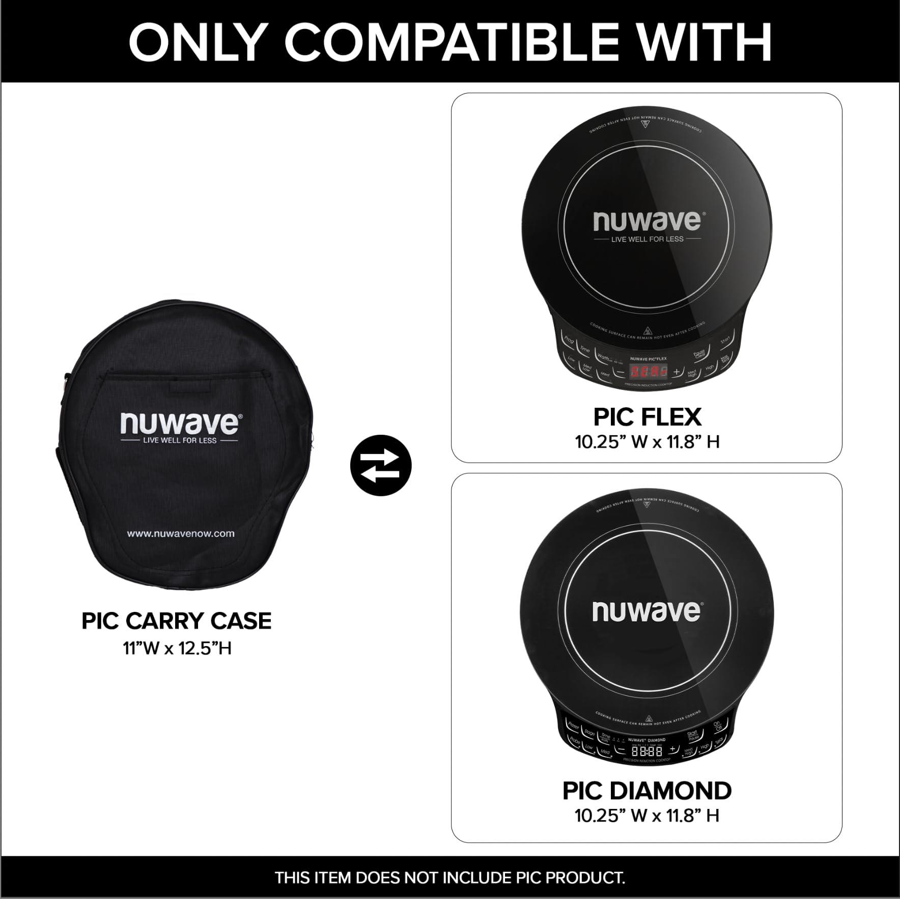 - COMPATIBILITY - This Carrying Case is designed for the Nuwave PIC Flex and Diamond Models 30501, 30502, 30511, 30532, 30537, and 30527 ONLY. Other PIC models including the PIC Gold and PIC Pro Chef will not fit inside the Carrying Case.